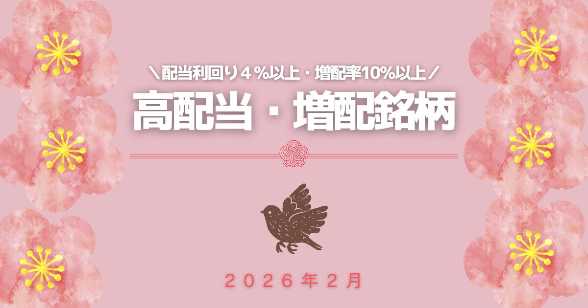 この記事では、私の保有銘柄のなかで2026年2月26日(木)の終値ベースで配当利回り4%以上、増配率10%以上の銘柄を厳選しました。