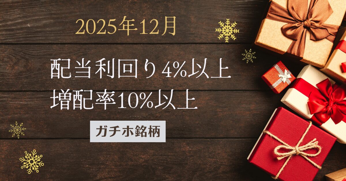 この記事では、私の保有銘柄のなかで2025年12月4日(木)の終値ベースで配当利回り4%以上、増配率10%以上の銘柄を厳選しました。